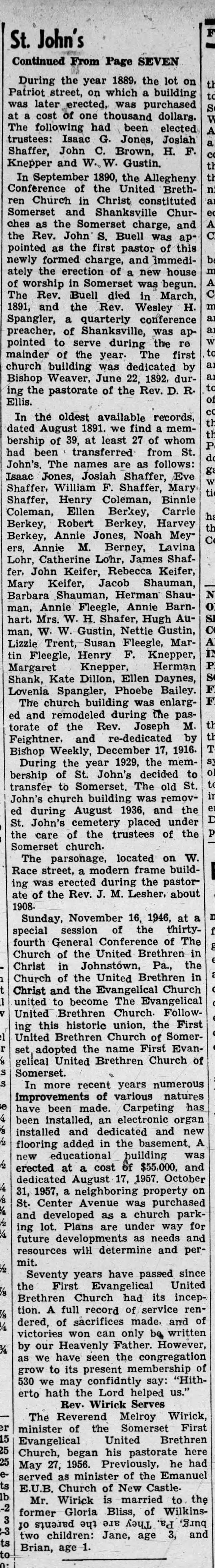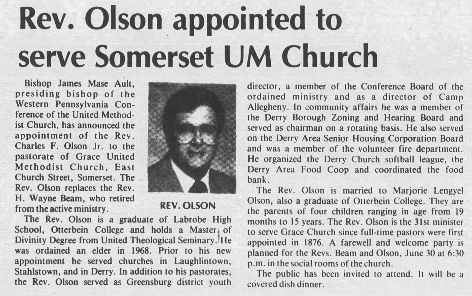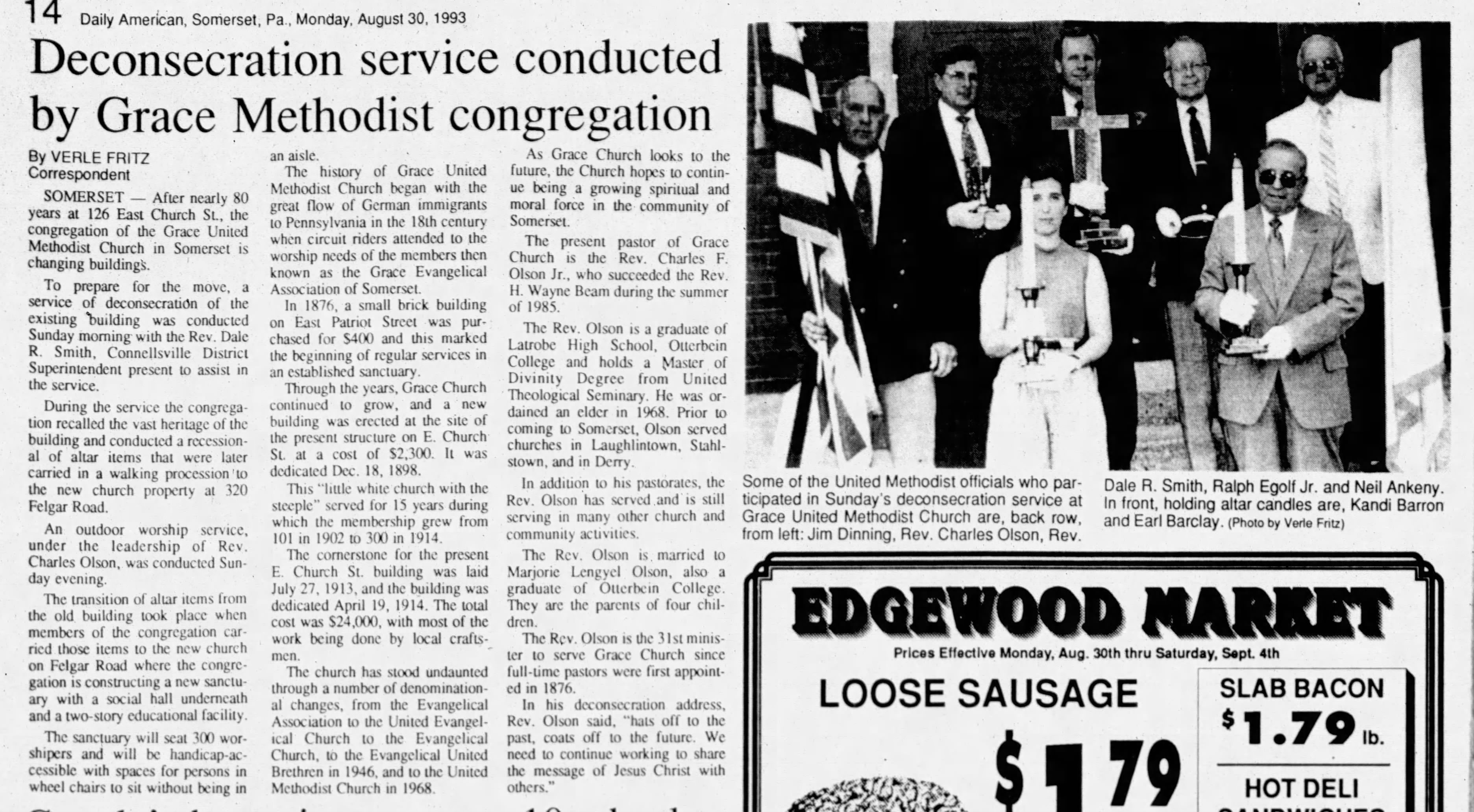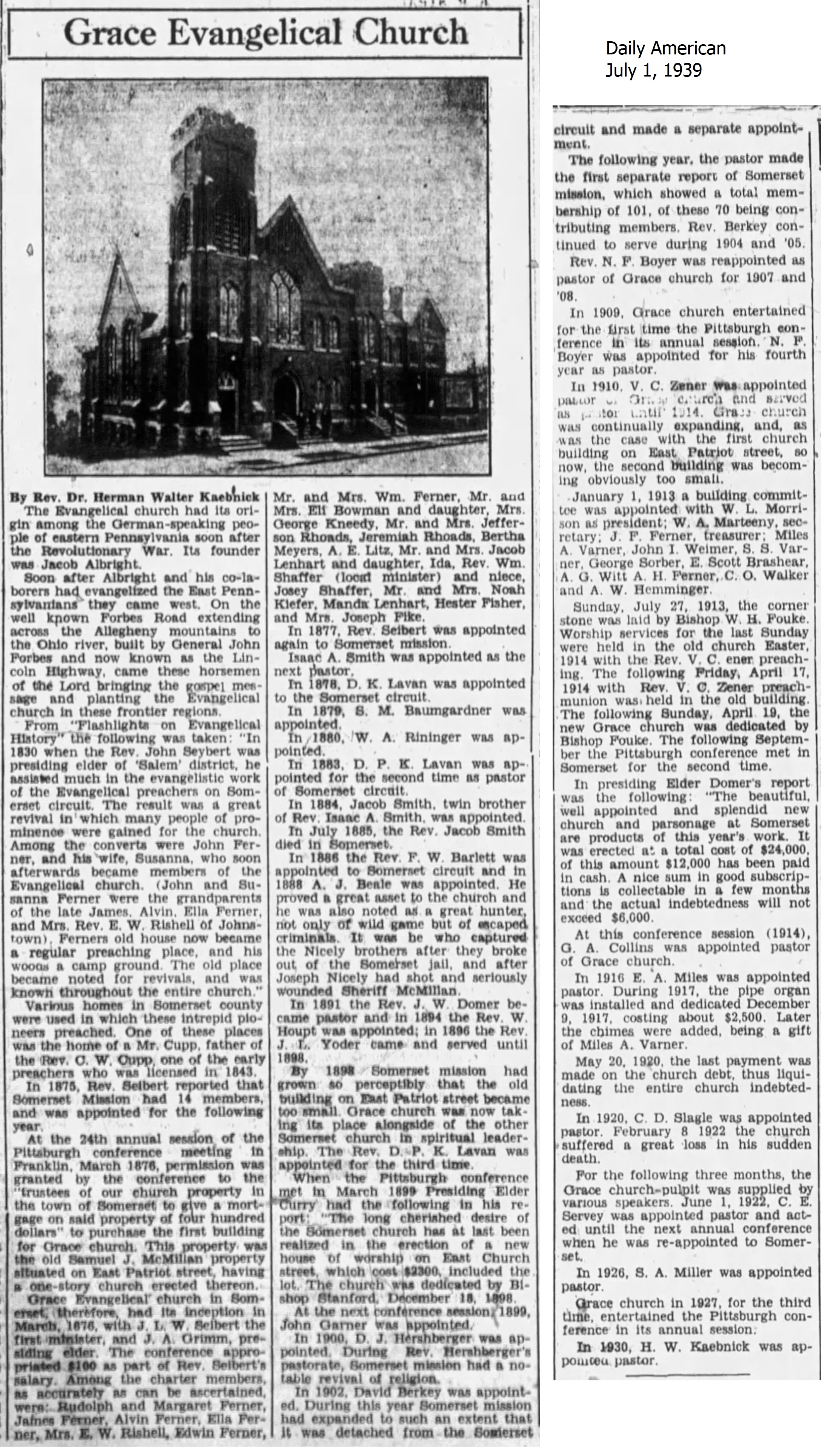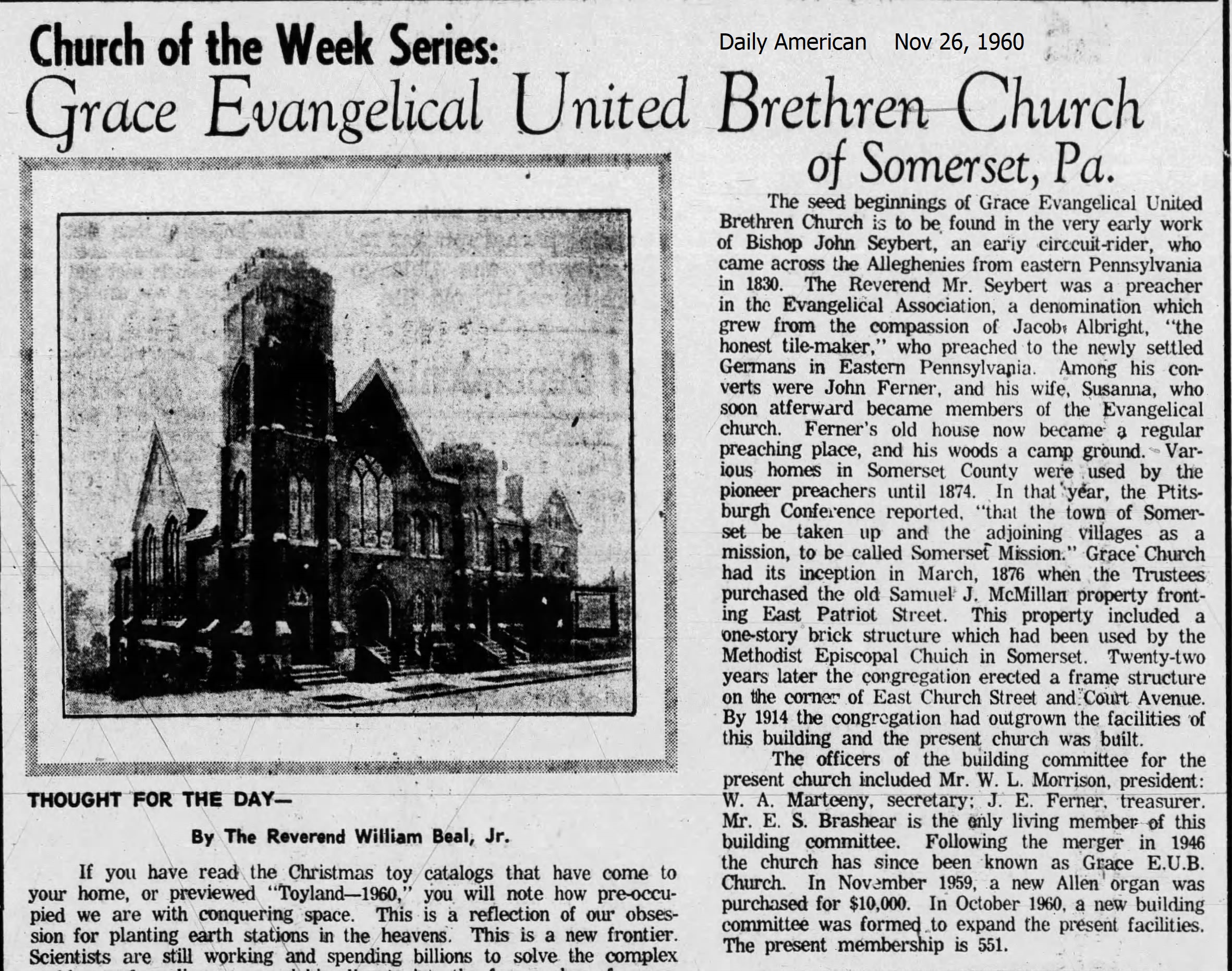 Somerset’s Grace EUB Church Founded 80 Years Ago (1958)