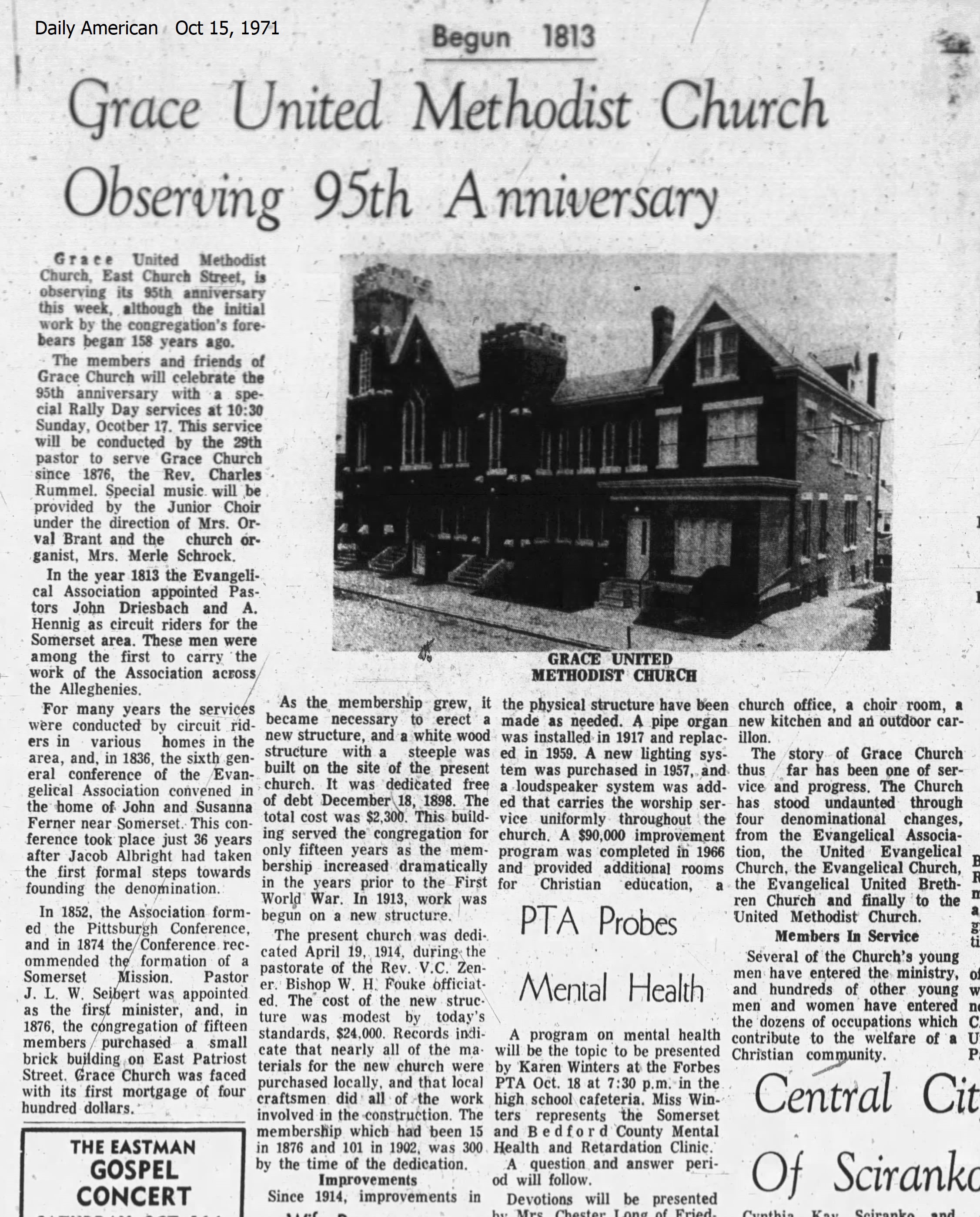 Grace United Methodist Church Observing 95th Anniversary (1971)